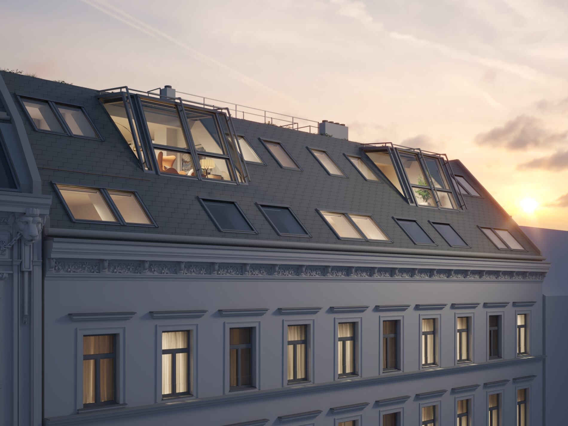 Alle drei Gebäude werden von Grund auf saniert, in nachhaltiger Holzbauweise aufgestockt und mit einer neuen Dachlandschaft mit viel Grün versehen, wodurch nutzbarer Wohnraum in Top-Qualität entsteht. Die Ausführung der Dächer – zurückversetzte, abgestufte Fassaden – gewährleistet im Innenbereich eine zeitgemäße Nutzung der Aufenthaltsräume und schafft einen besseren Blick zum umgebenden Außenraum. Von hier genießt man eine Aussicht auf die Dächer der Stadt, bis zum Kahlenberg. Der Blick in den begrünten Innenhof wirkt sich unmittelbar auf das individuelle Wohlbefinden der Bewohner:innen aus.